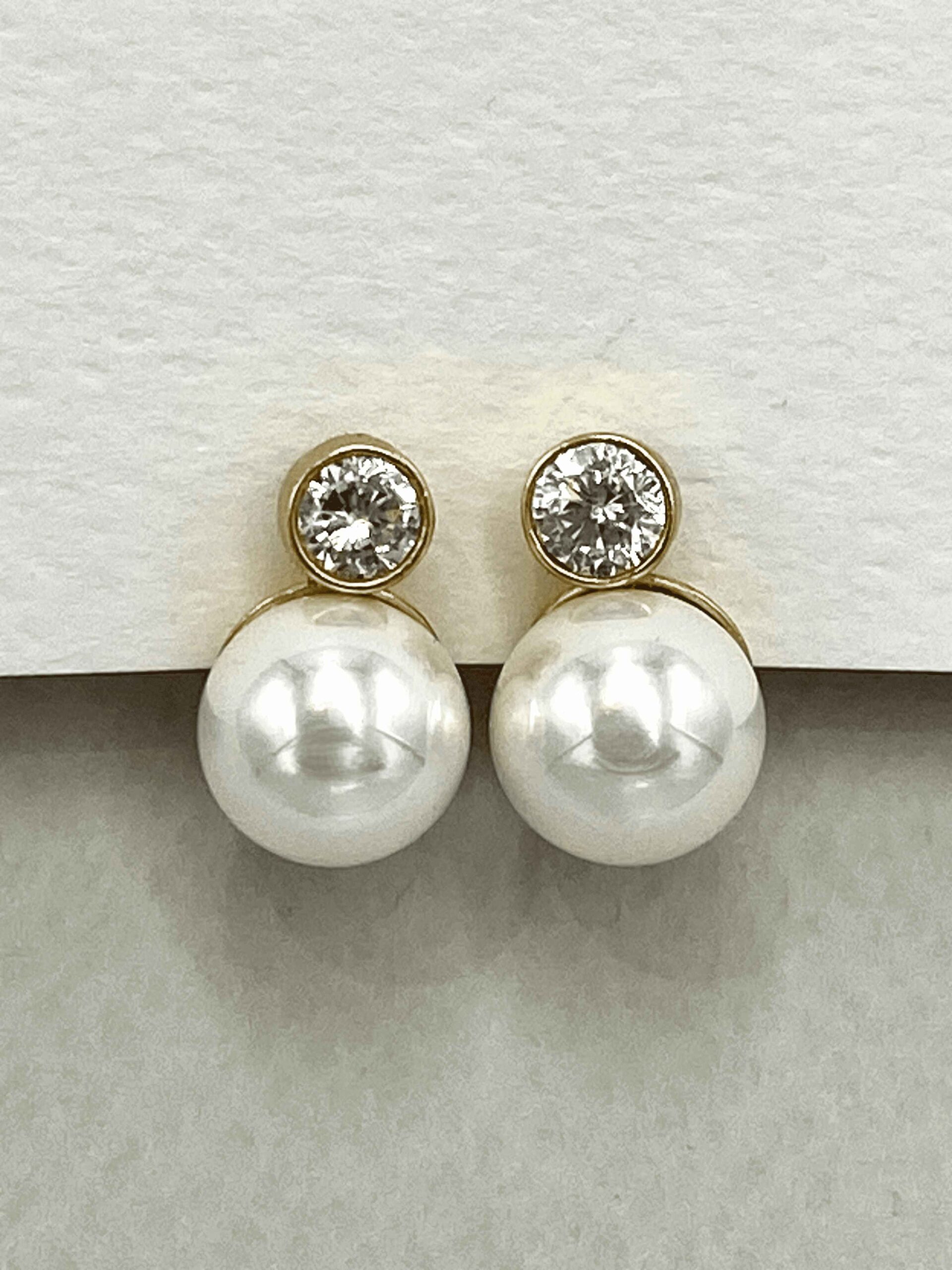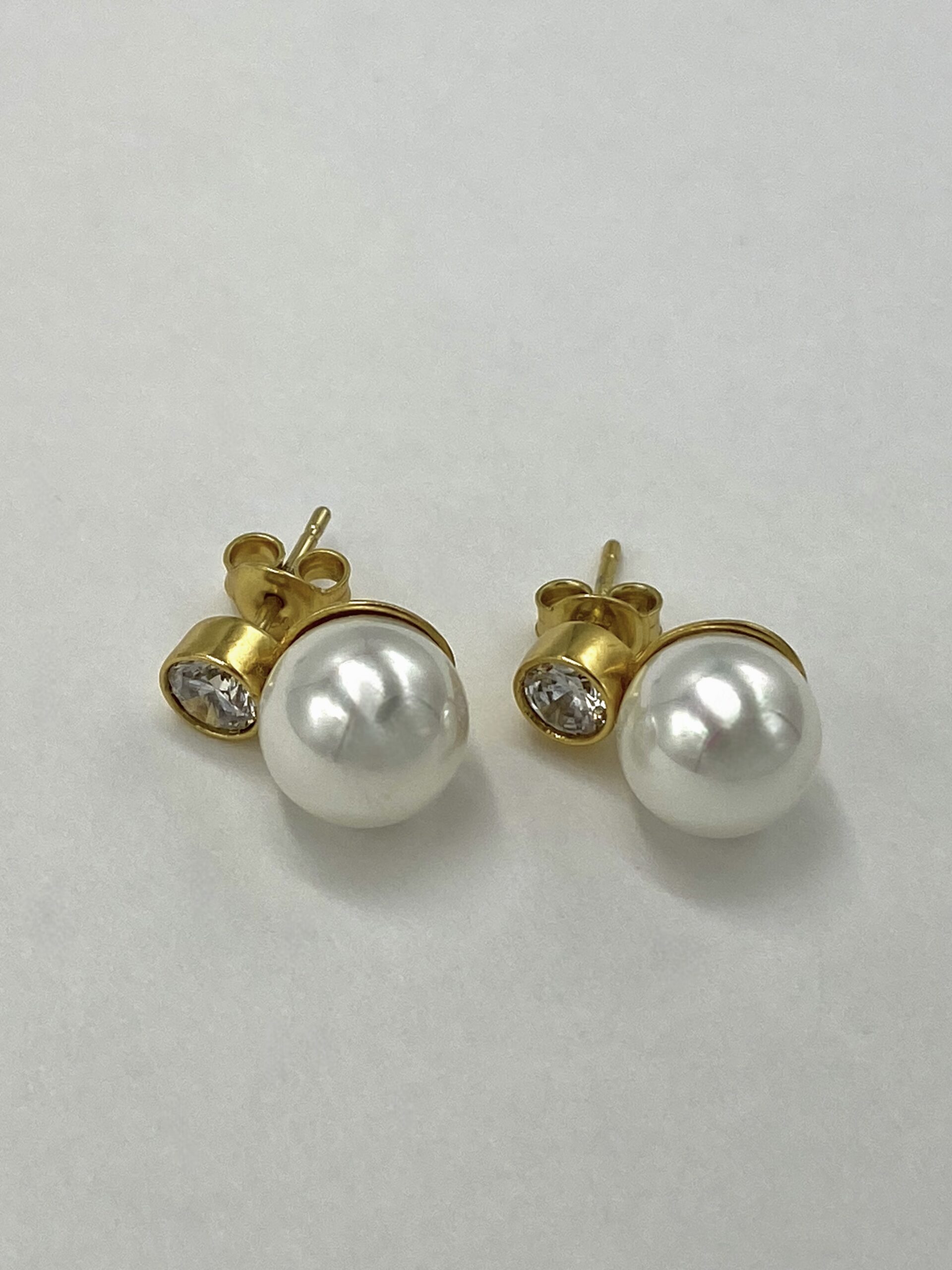 Ασημένια σκουλαρίκια με μαργαριτάρι και ζιργκόν ποσότητα
