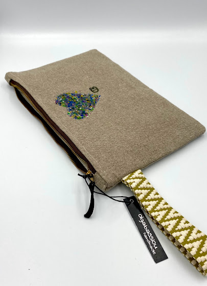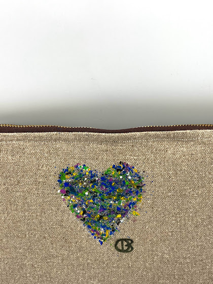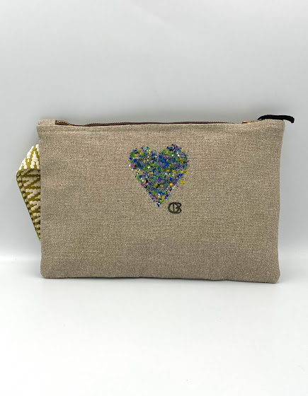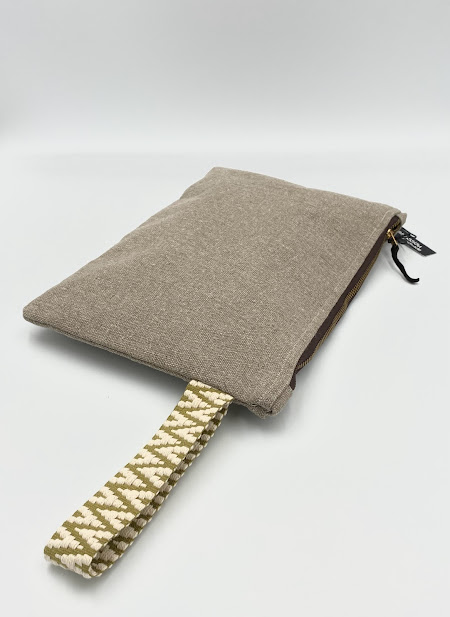 Τσαντάκι με φερμουάρ από λινό ύφασμα ζωγραφισμένο στο χέρι.