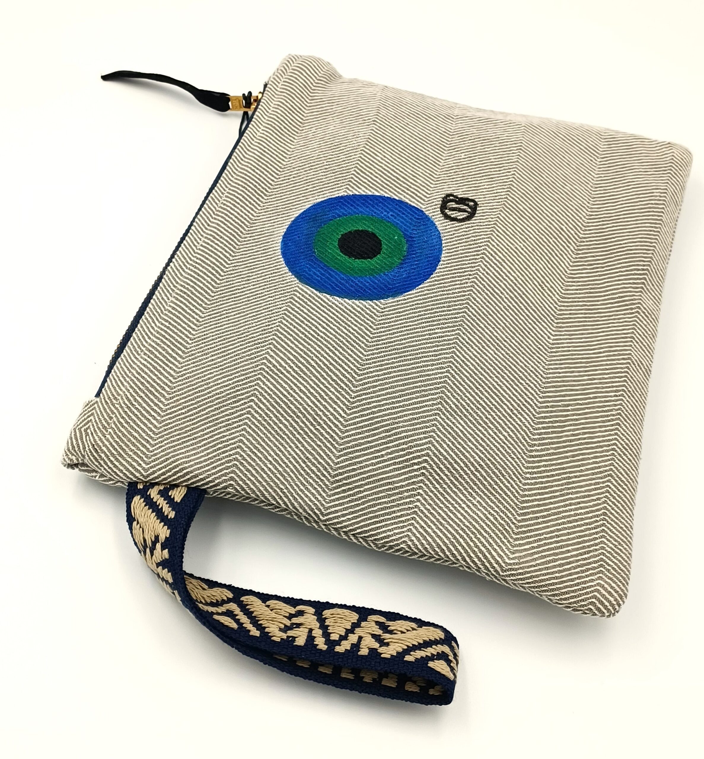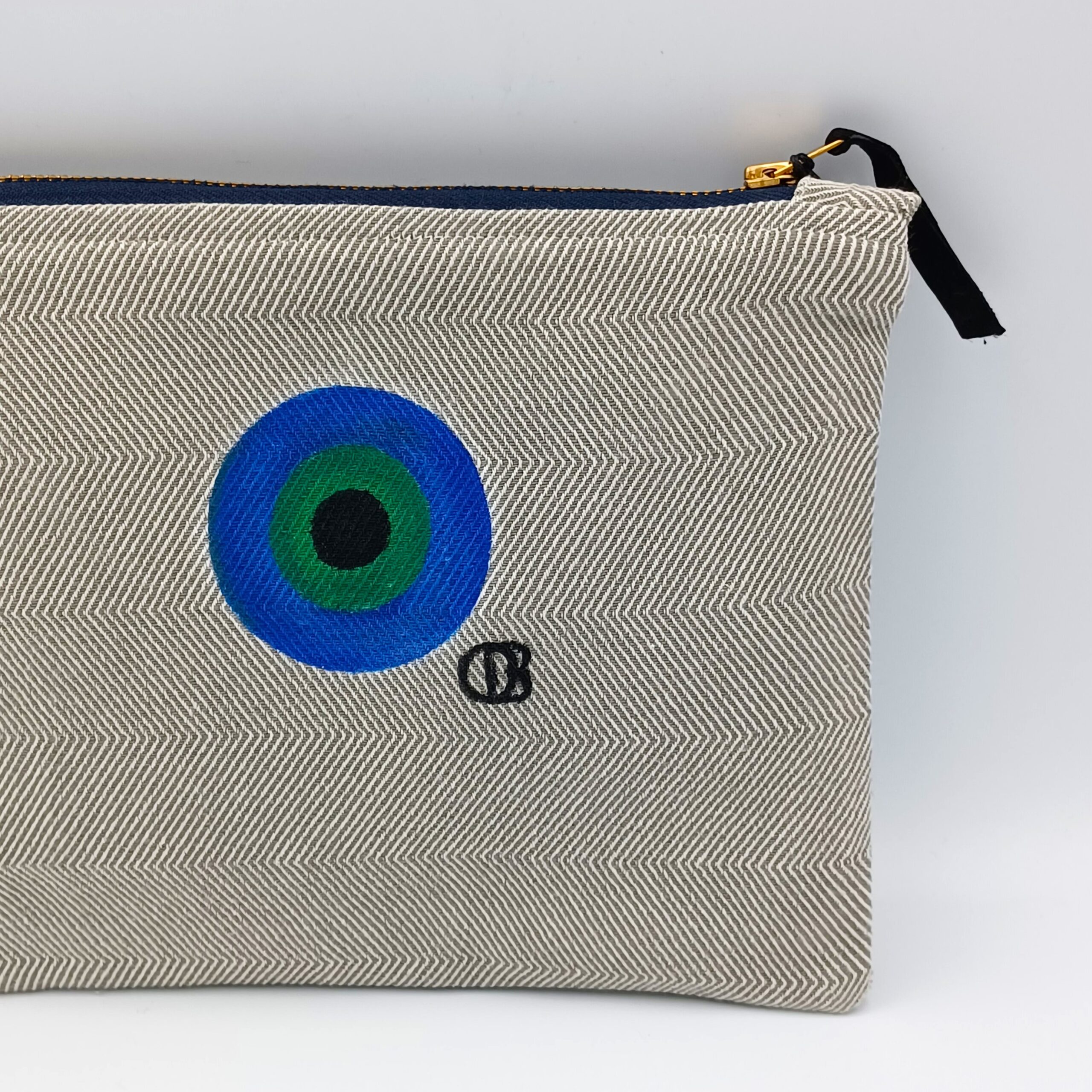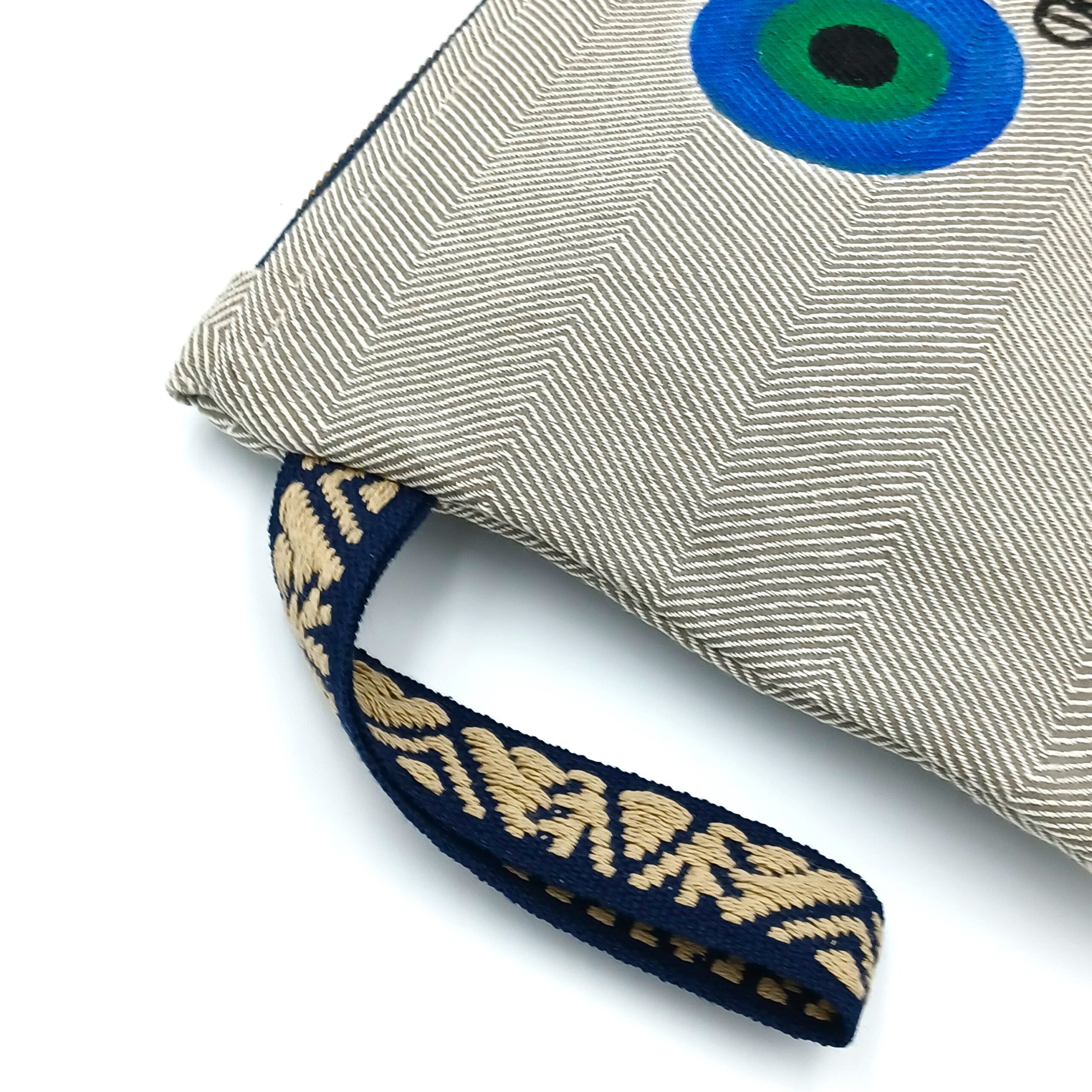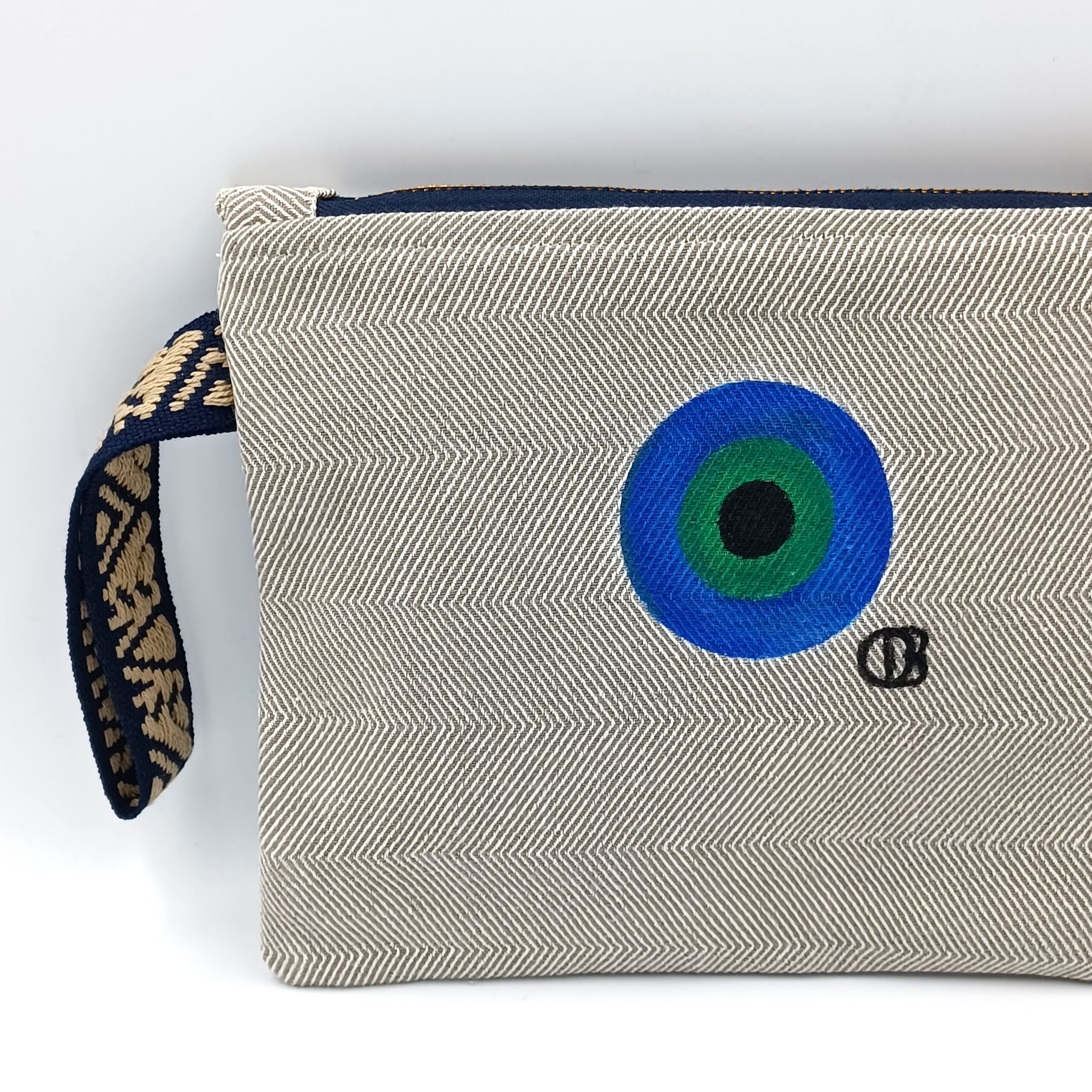 Τσαντάκι μικρού μεγέθους υφασμάτινο με 100% βαμβακερό ύφασμα, ζωγραφισμένο στο χέρι. Διαθέτει φόδρα και ιμάντα. Κλείσιμο τσάντας με φερμουάρ.