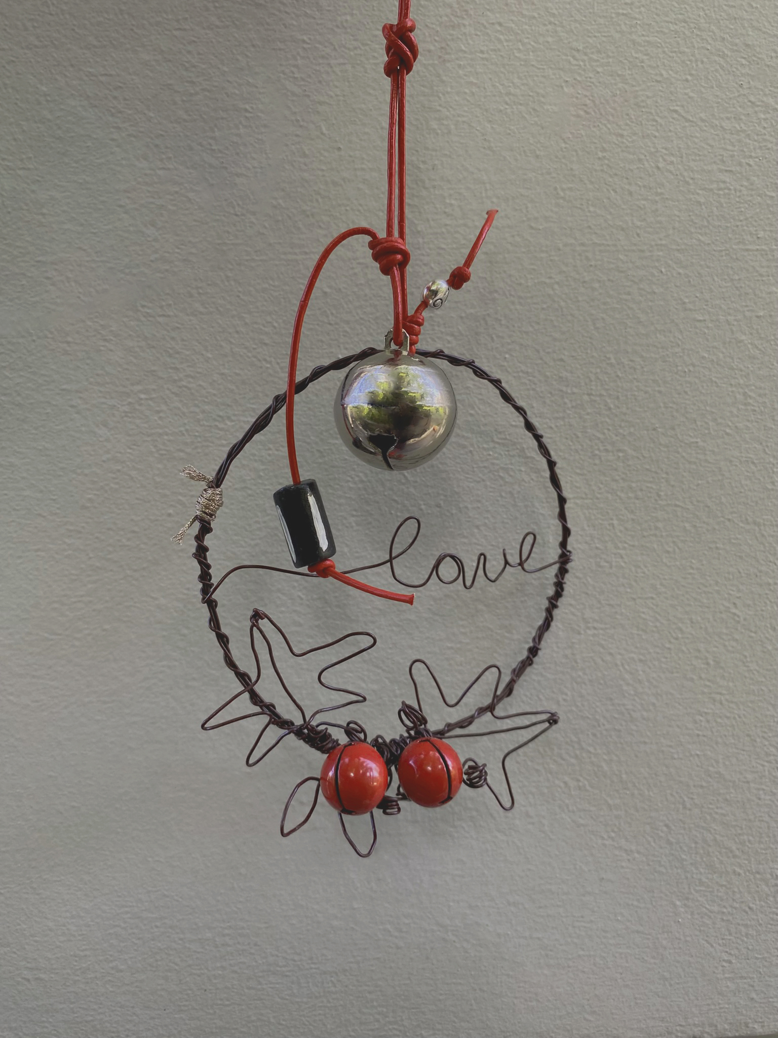 Χειροποίητο συρμάτινο γούρι.  Δεμένο με δερμάτινο κορδόνι.
