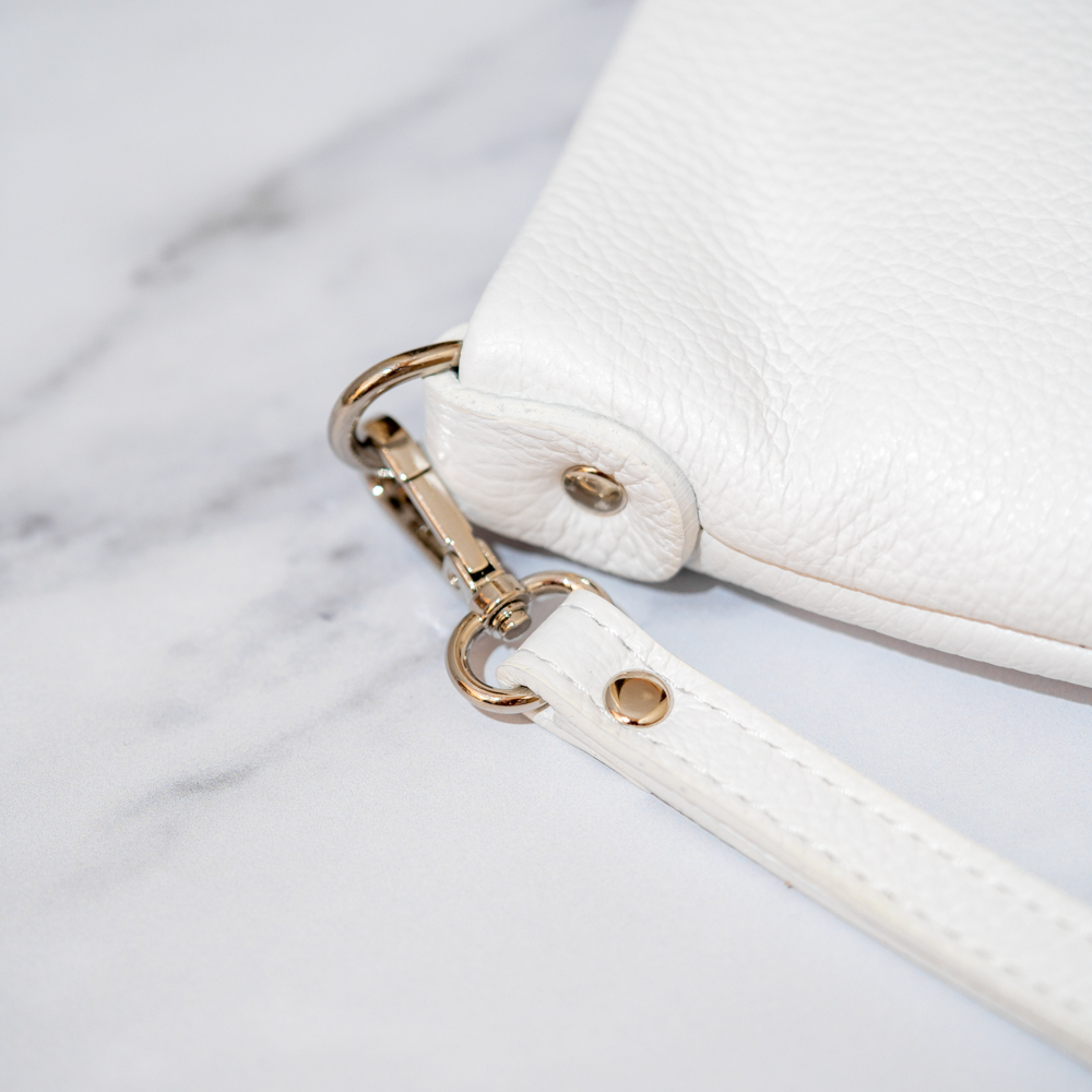 Δερμάτινο τσαντάκι φάκελος καρπού και χιαστί με αφαιρούμενο λουράκι-Λευκό