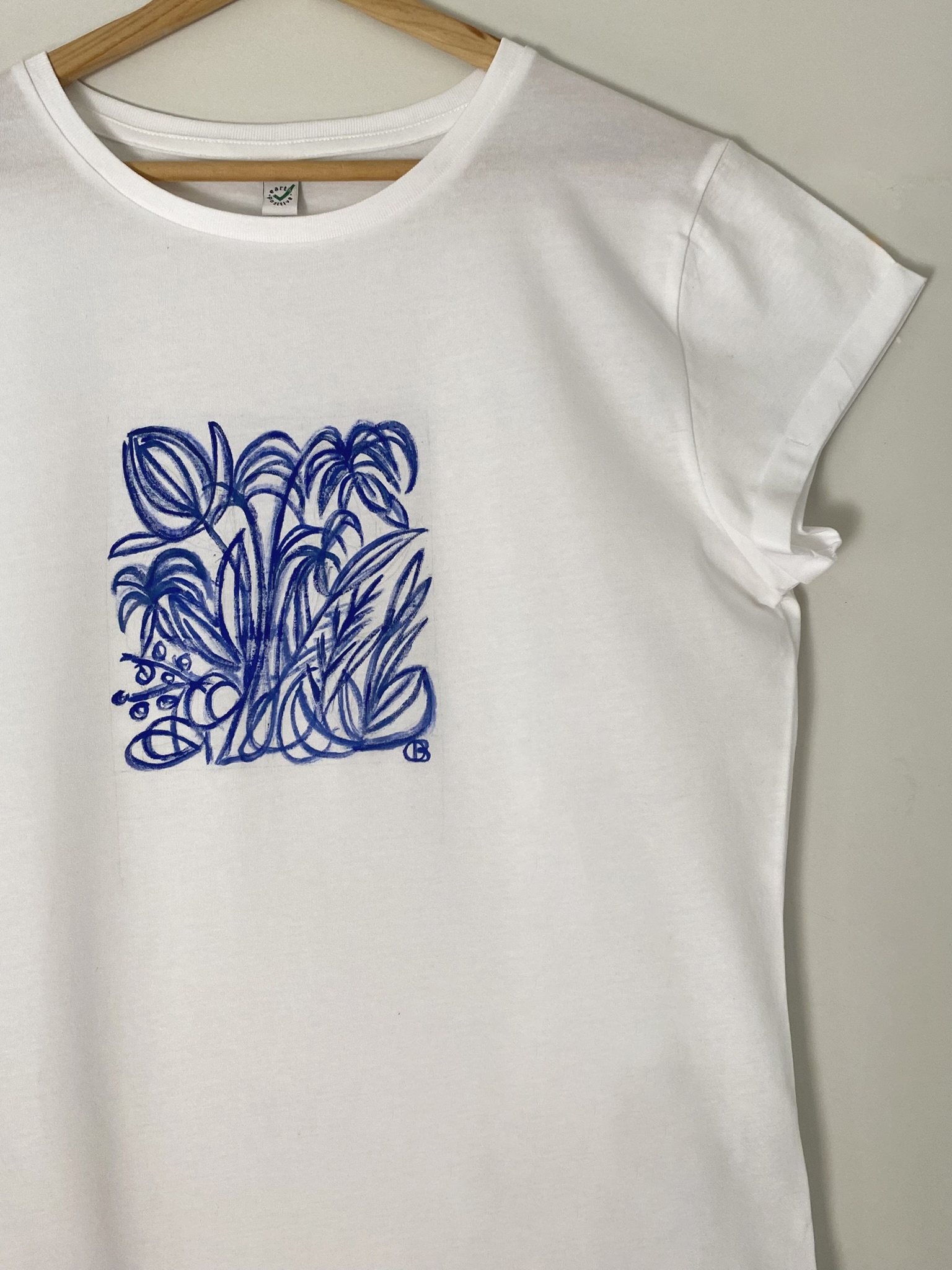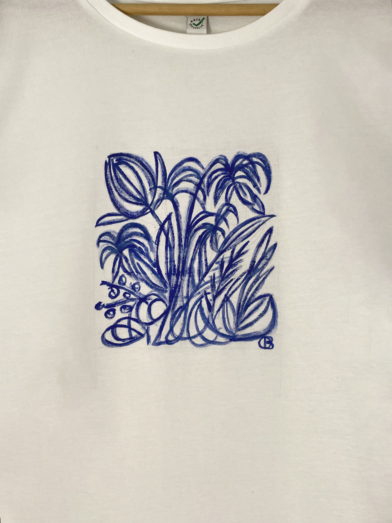 Ζωγραφισμένη μπλούζα στο χέρι με 100% οργανικό βαμβάκι. Διαθέτει λεπτό μοντέρνο γιακά και ringspun cotton.