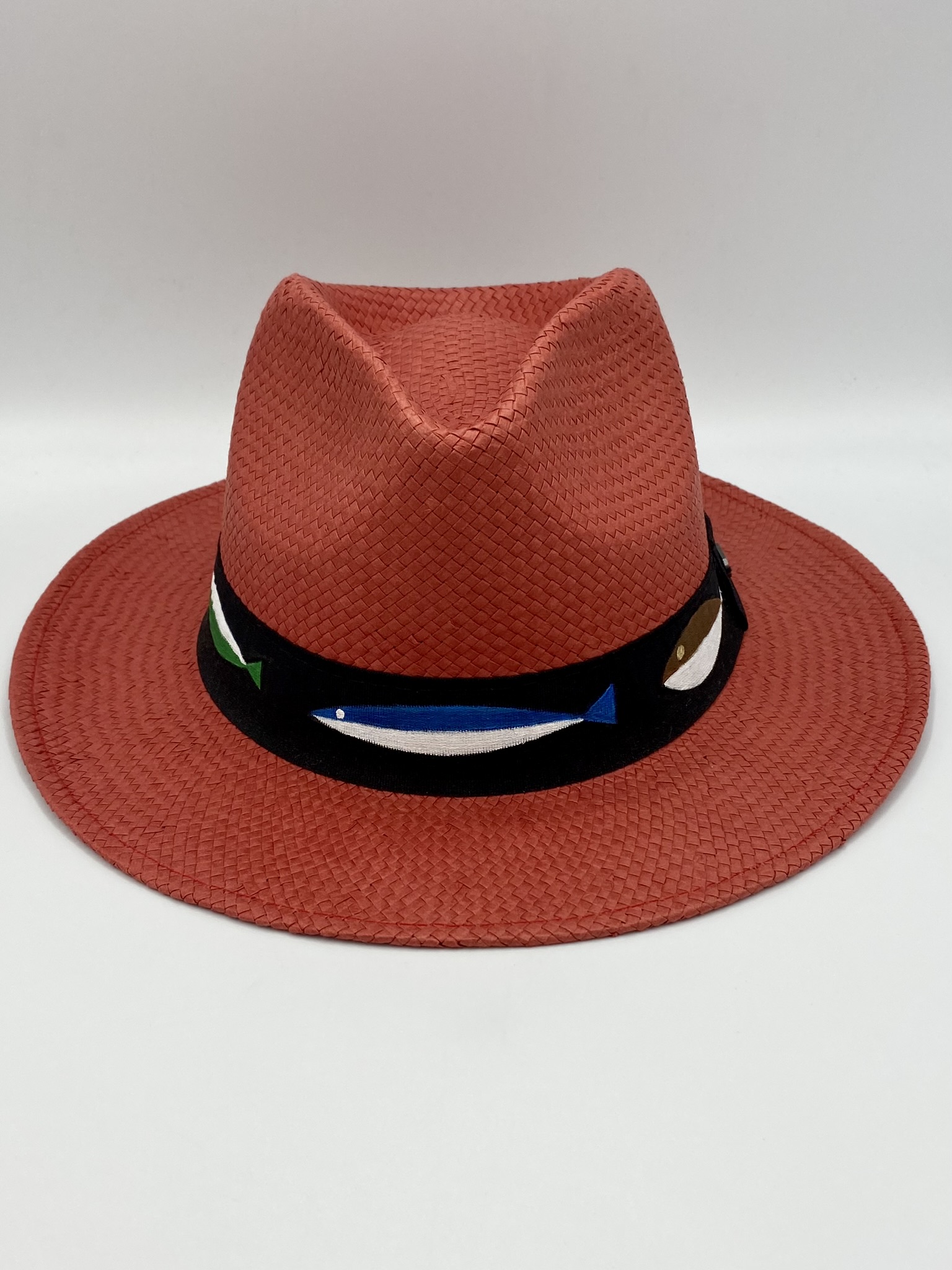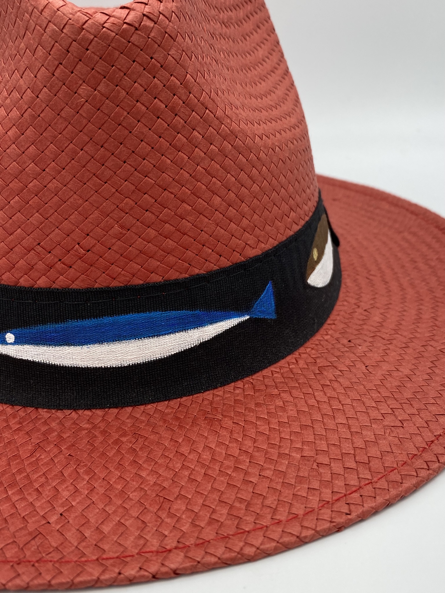 Ζωγραφισμένο κόκκινο καπέλο ,τύπου πάναμα