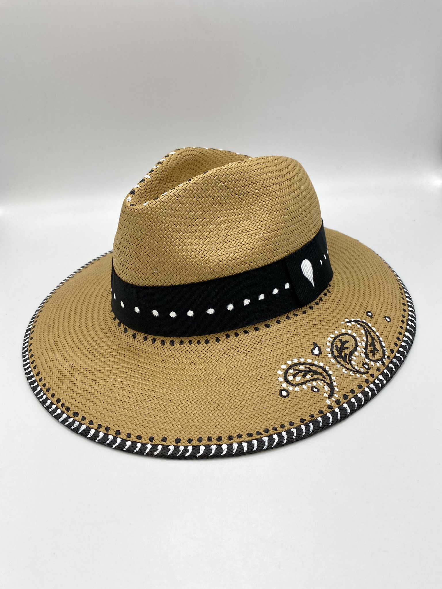 Γυναικείο ζωγραφισμένο καπέλο από άχυρο toyo. Το άχυρo toyo είναι ένας τύπος καλαμιού που κατασκευάζεται κυρίως στην Ιαπωνία με ρυζόχαρτο, είναι λείο και ελαφρύ.