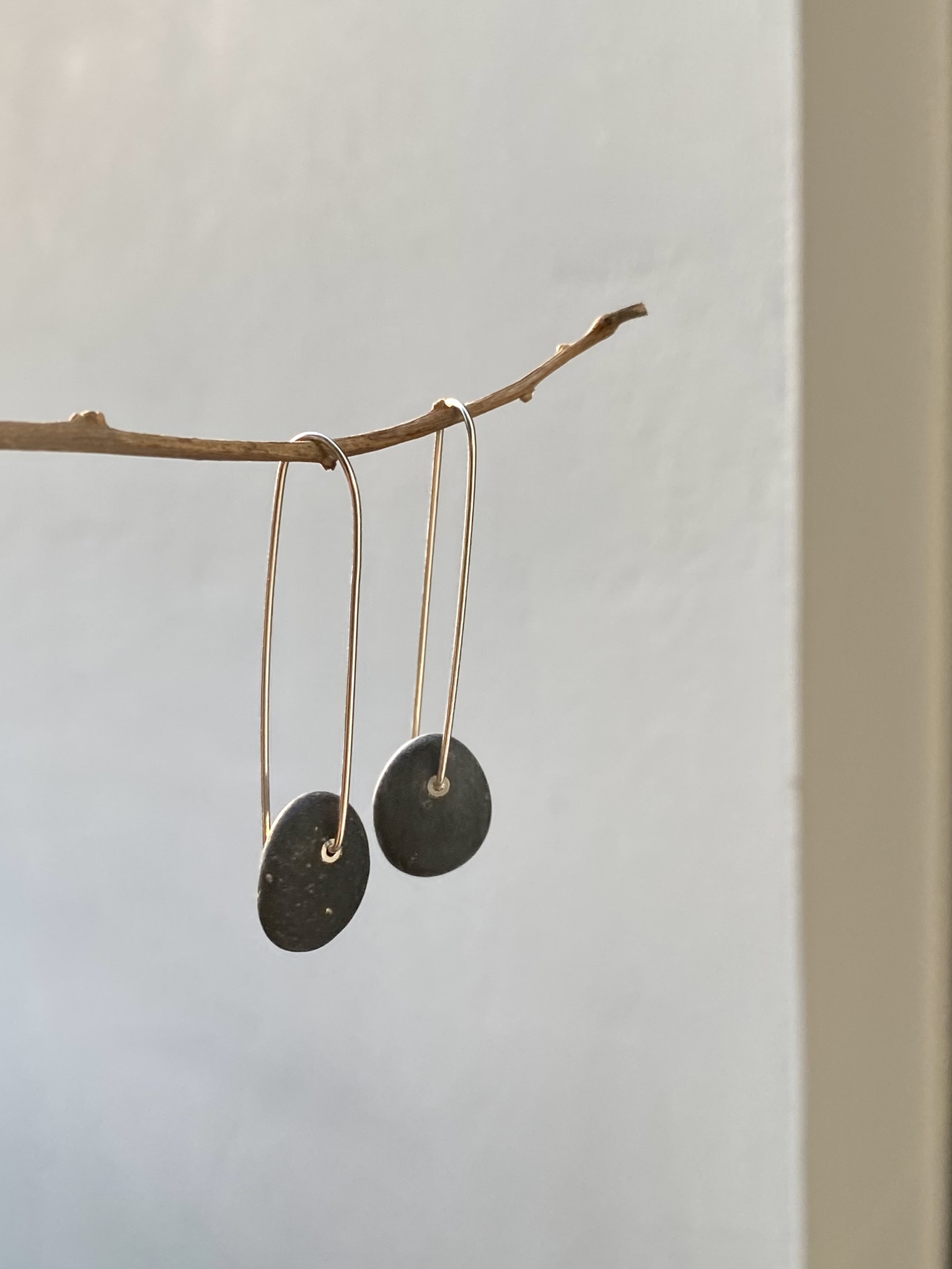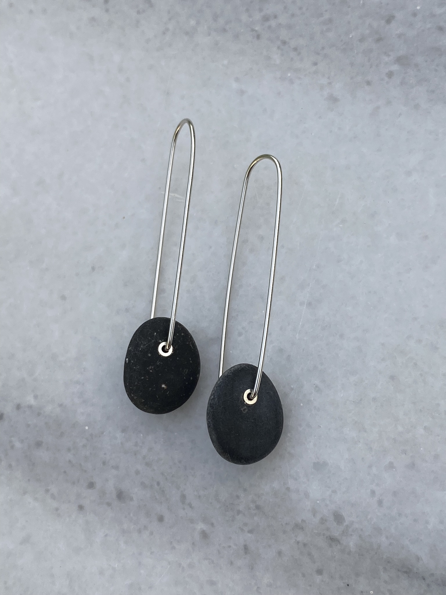 Κρεμαστά σκουλαρίκια από μαύρο βότσαλο