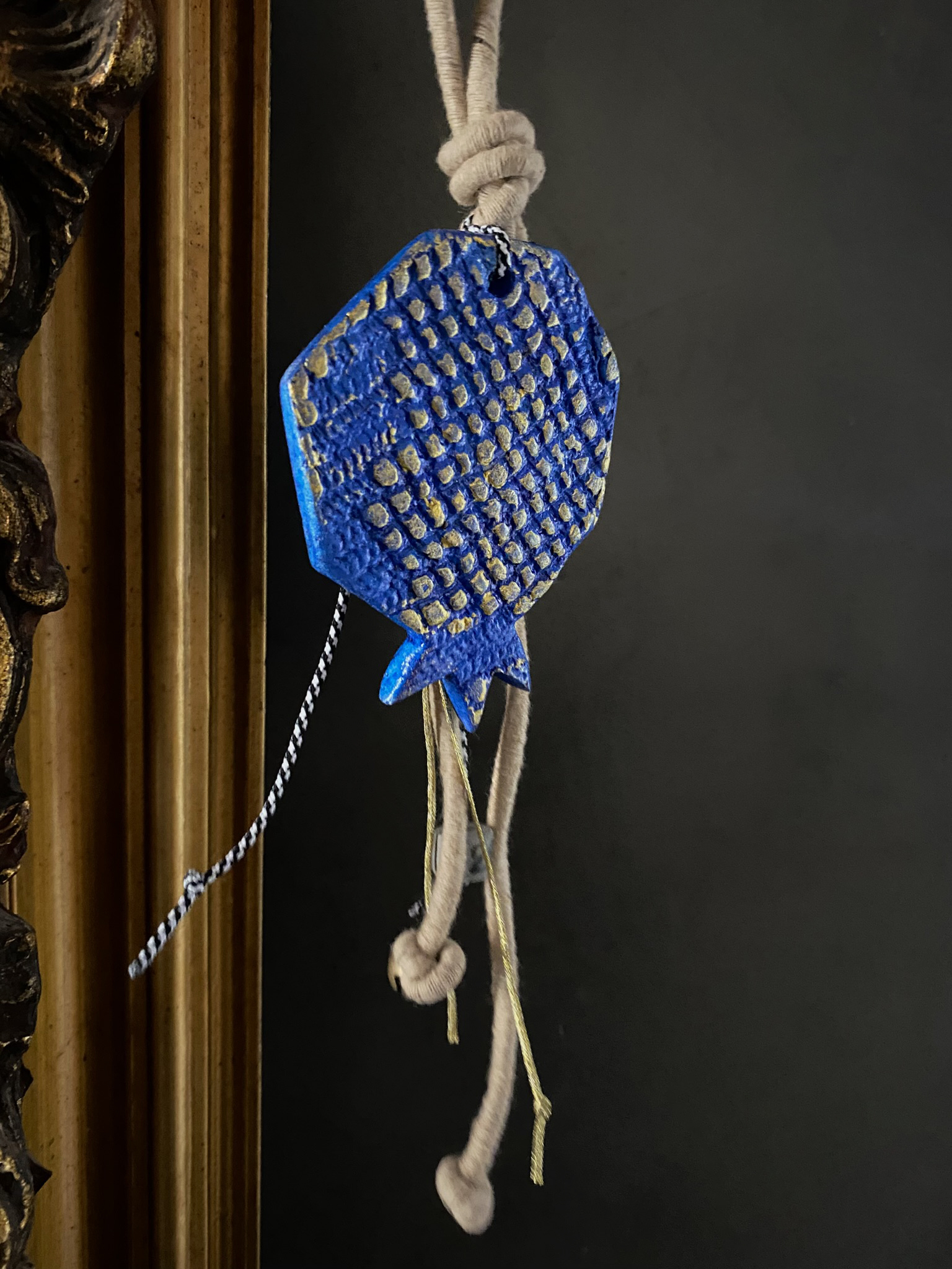 Χειροποίητο ρόδι γούρι από πηλό, ζωγραφισμένο στο χέρι.