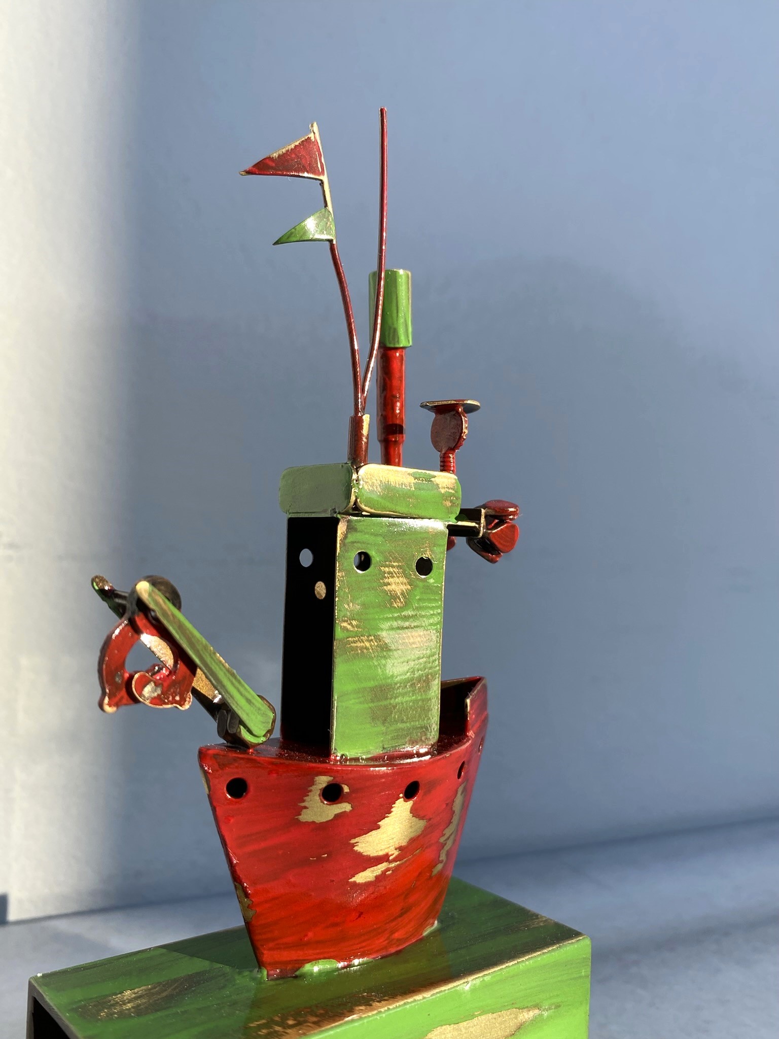 Χειροποίητο καραβάκι με μεταλλική βάση