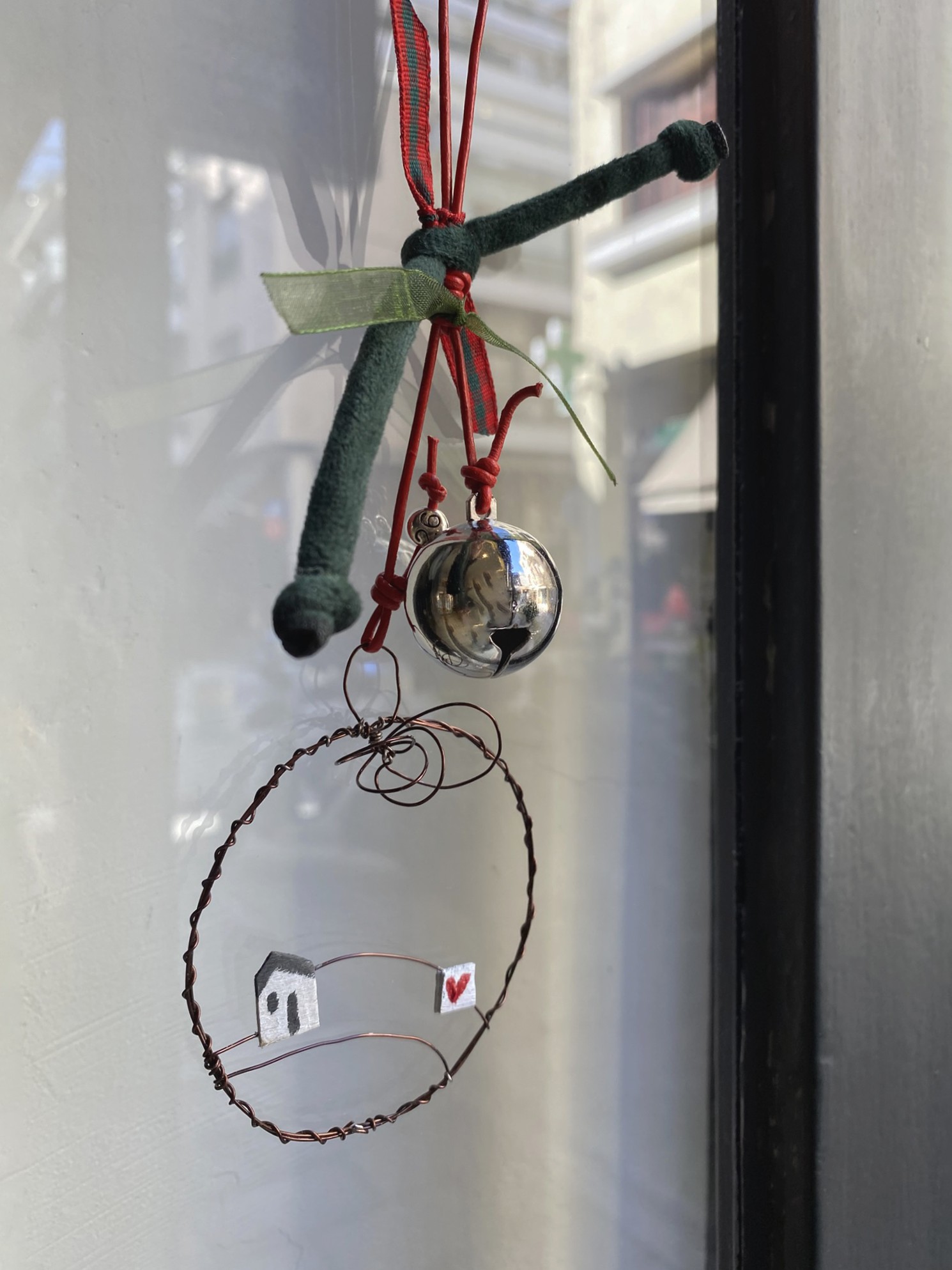 Χειροποίητο συρμάτινο γούρι. Δεμένο με δερμάτινο κορδόνι.
